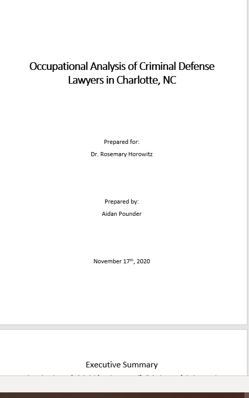 Occupational Analysis professionally detailing criminal defense lawyers in Charlotte, NC and corresponding memo. Technical writing analyzing data and statistics with the purpose of providing explicit details surrounding the current and prospective state of criminal defense attorneys in Charlotte, NC